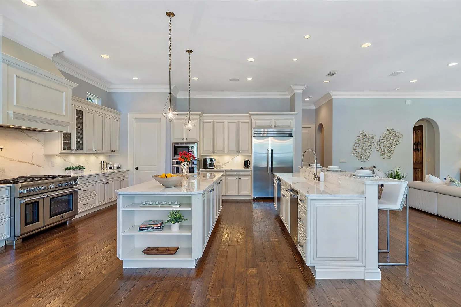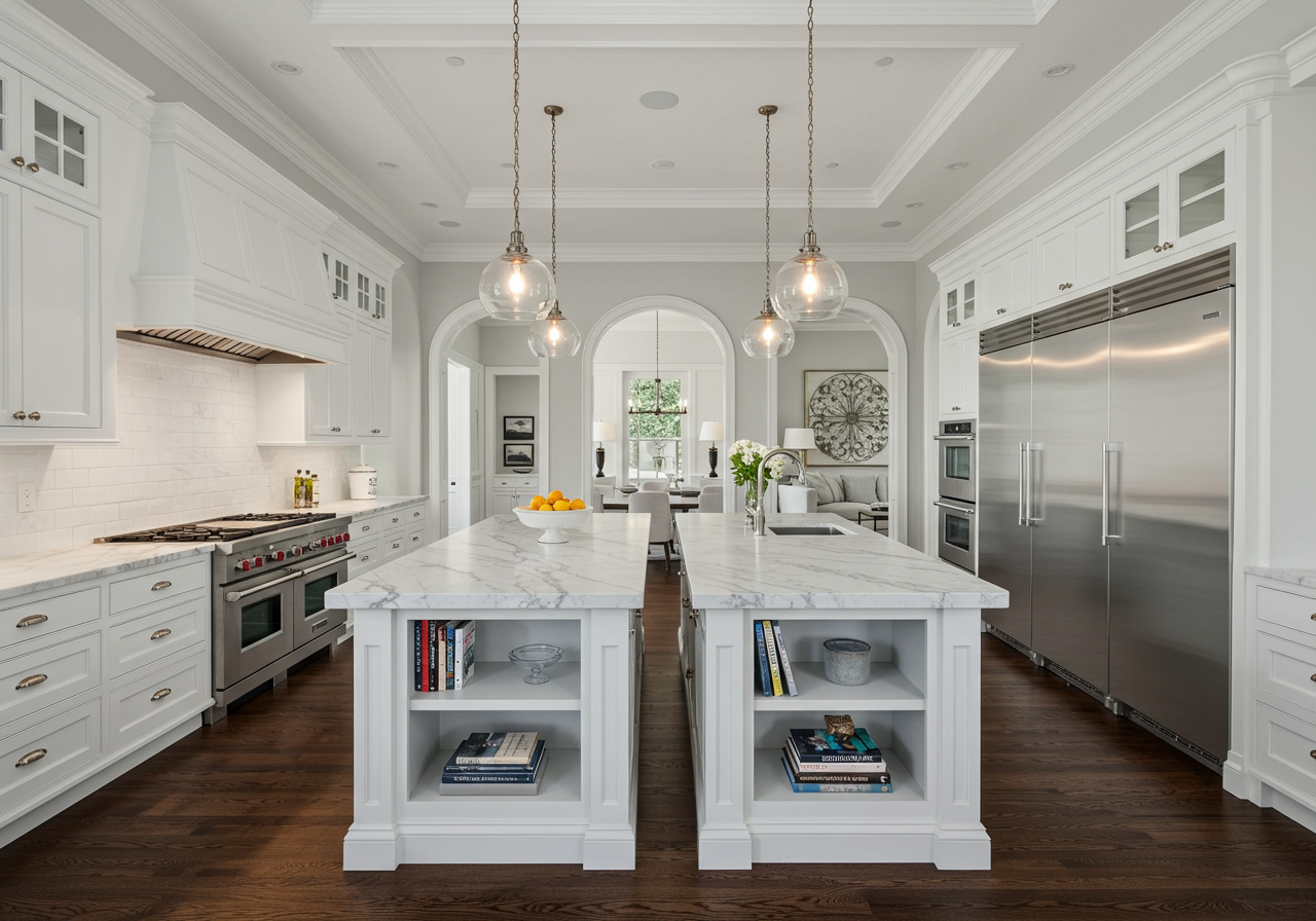 Surface area is key in a kitchen, and buyers are looking for a generously sized island to provide valuable counter space. Personally, I have a 12 x 6-foot island in my own home. Alternatively, multiple islands — especially with stone or granite tops — are a new trend that buyers are interested in. A big island, or multiple islands, is ideal for displaying food and decor, so guests can see where everything is and help themselves. More seating can also be incorporated this way, meaning guests can get comfortable and feel right at home in the kitchen while hosts are cooking.